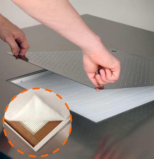 The Class M5 prefilter mat helps extend filter life by filtering out larger particulates first, and our Class H13 HEPA filter filters out finer particulates and dust. These are easy to access and replace without tools and, when paired together, reduce operating expenses by increasing the life expectancy of your filter unit. For additional odour reduction, an activated carbon filter mat is also available.